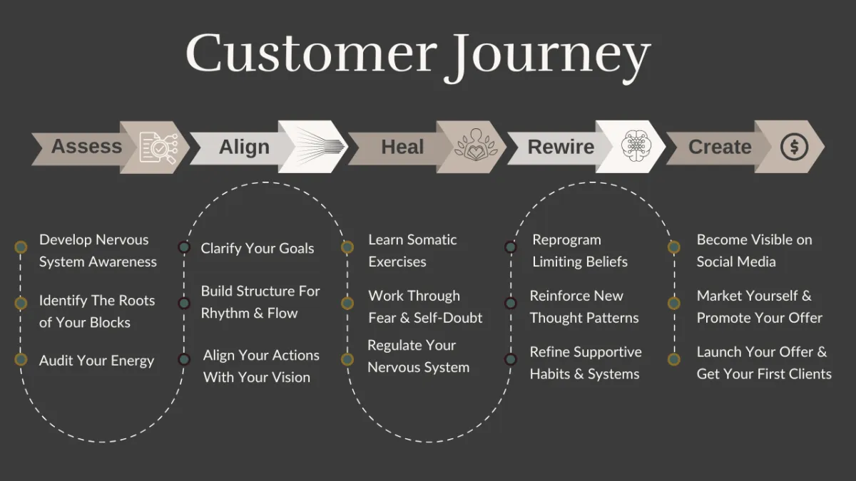 Most business programs focus only on external strategy — branding, marketing, content, funnels, and sometimes mindset. All are necessary, but without addressing the inner blocks (like fear, self-doubt, etc.), those strategies rarely stick. Heal to Create combines emotional healing and somatic tools to help you overcome what’s really holding you back — and build your business from the inside out, not the outside in.